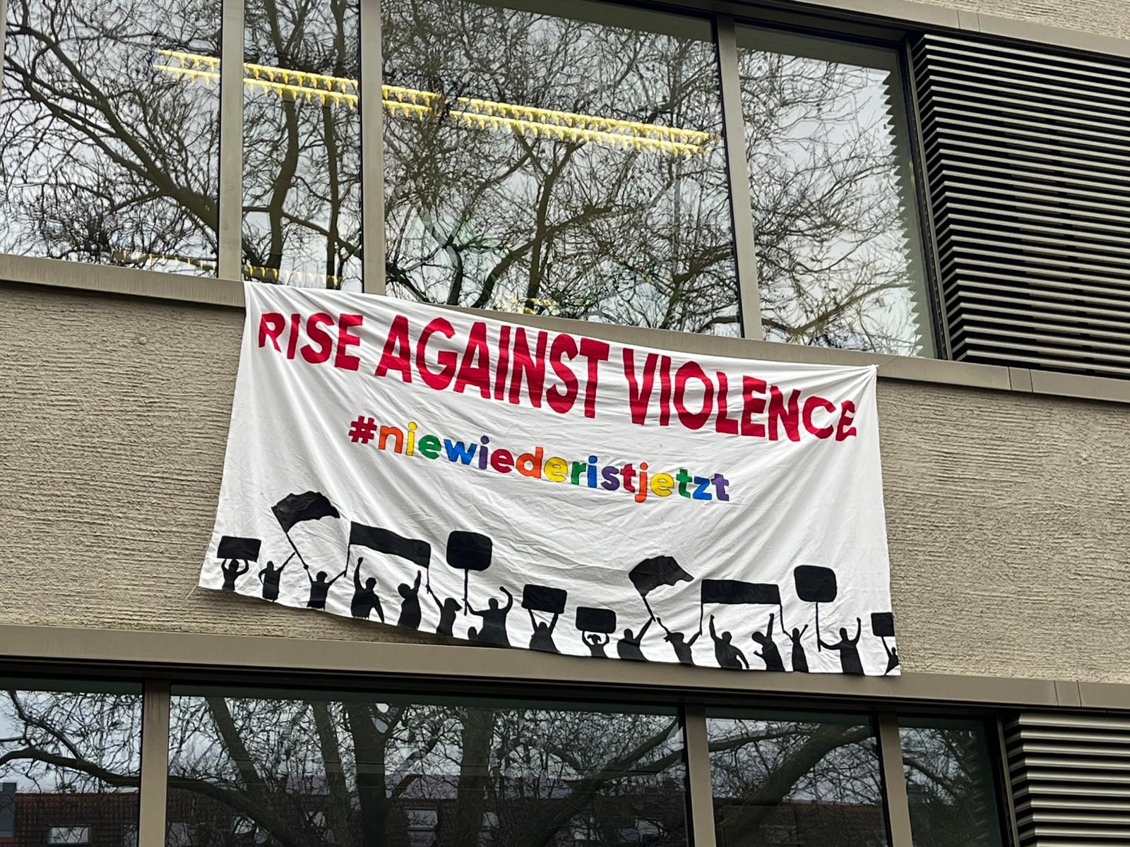 Die Ausstellung mit den Stellwänden zu den Menschenrechten bleibt noch bis nächsten Donnerstag aufgebaut und kann jederzeit von Klassen und Lehrkräften besucht und angeschaut werden.