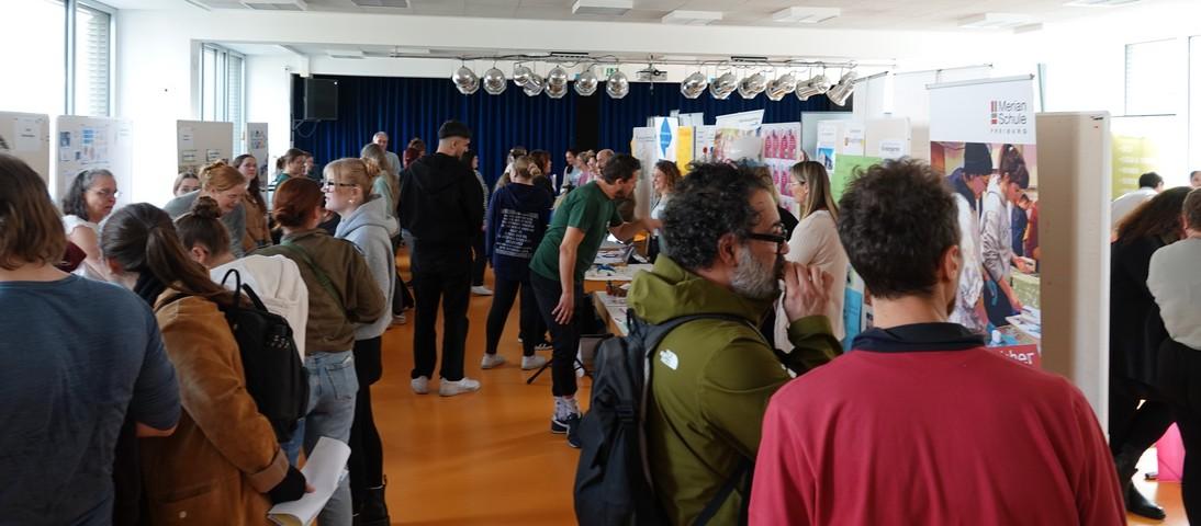 Reges Interesse in aufgelockerter Atmosphäre war am 14. Februar in der Merian-Schule beim 3. Markt der Praxisstellen zu spüren. Mit 29 Trägern aus Freiburg und dem Umland hatten unsere angehenden Erzieherinnen und Erzieher wieder viele Gelegenheiten, sich über die Angebote verschiedener Praxiseinrichtungen zu informieren und wertvolle Kontakte zu knüpfen.