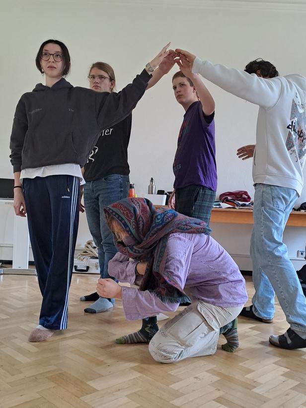 Neben der intensiven Körperarbeit, szenisches Interpretieren von Texten und etwas historischem Input zur Geschichte des geplanten Stückes stand auch viel Spaß und Spiel auf dem Programm.
